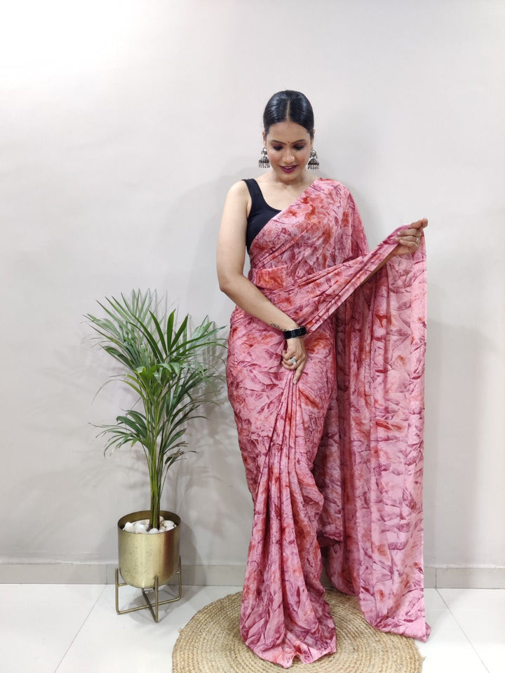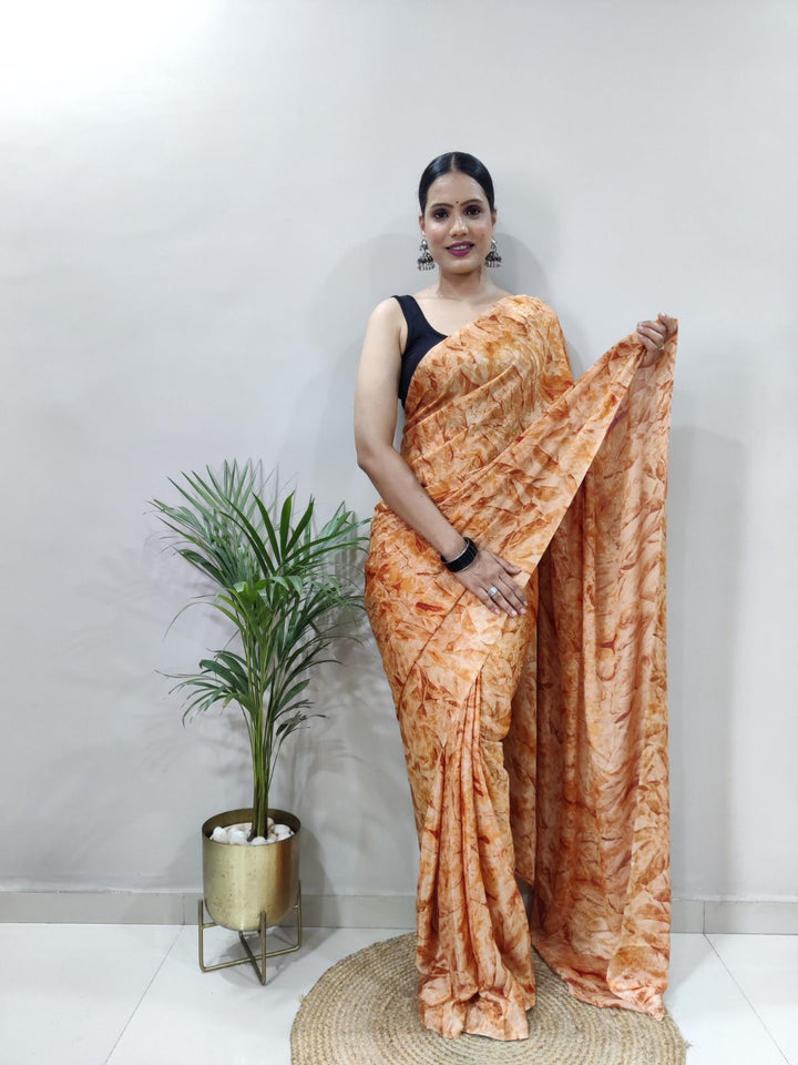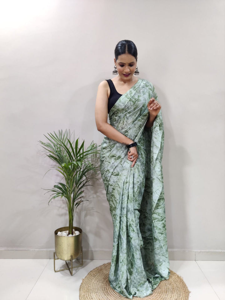 Party Wear 1-Min Georgette Ready To Wear Saree With Blouse Piece