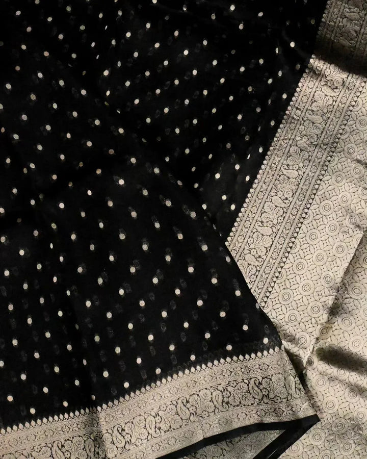 Black Pure Kora Banarasi Handloom Saree - Reshmi Kora
