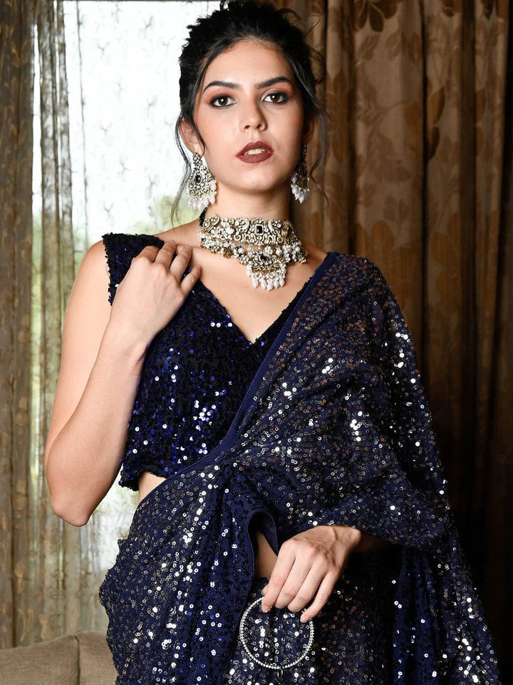 Blue Fancy Sequence Work Georgette Saree