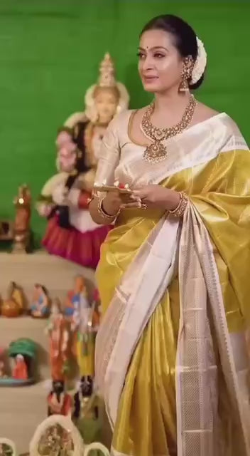 Celebrity Inspired Gold & Silver Border Banarasi Tissue Silk Saree