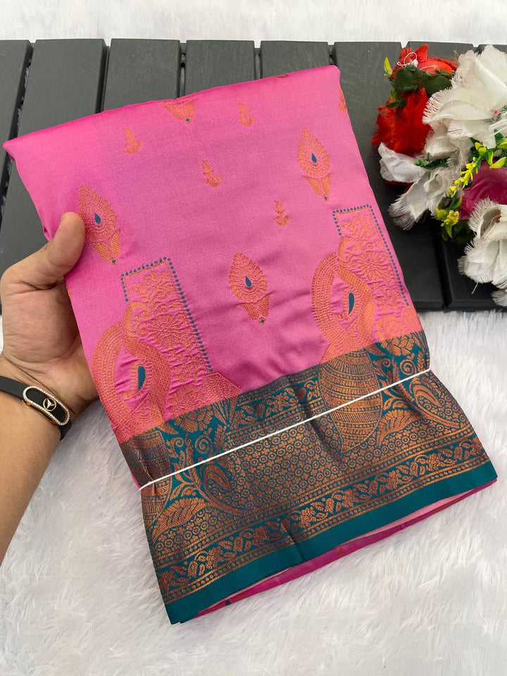 Indulge in the luxurious feel of Soft Banarasi Silk - a fabric that exudes elegance and sophistication. Made from the finest silk threads, this fabric offers a silky smooth texture that is a delight to wear. Perfect for special occasions or everyday wear, Soft Banarasi Silk adds a touch of glamour to any outfit.