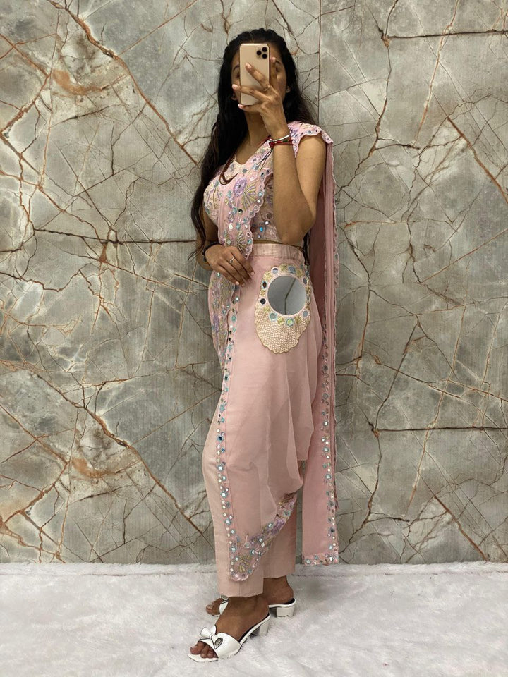 Fancy Designer Wear Real Mirror Embroidered Work Plazo With Attached Dupatta And Blouse
