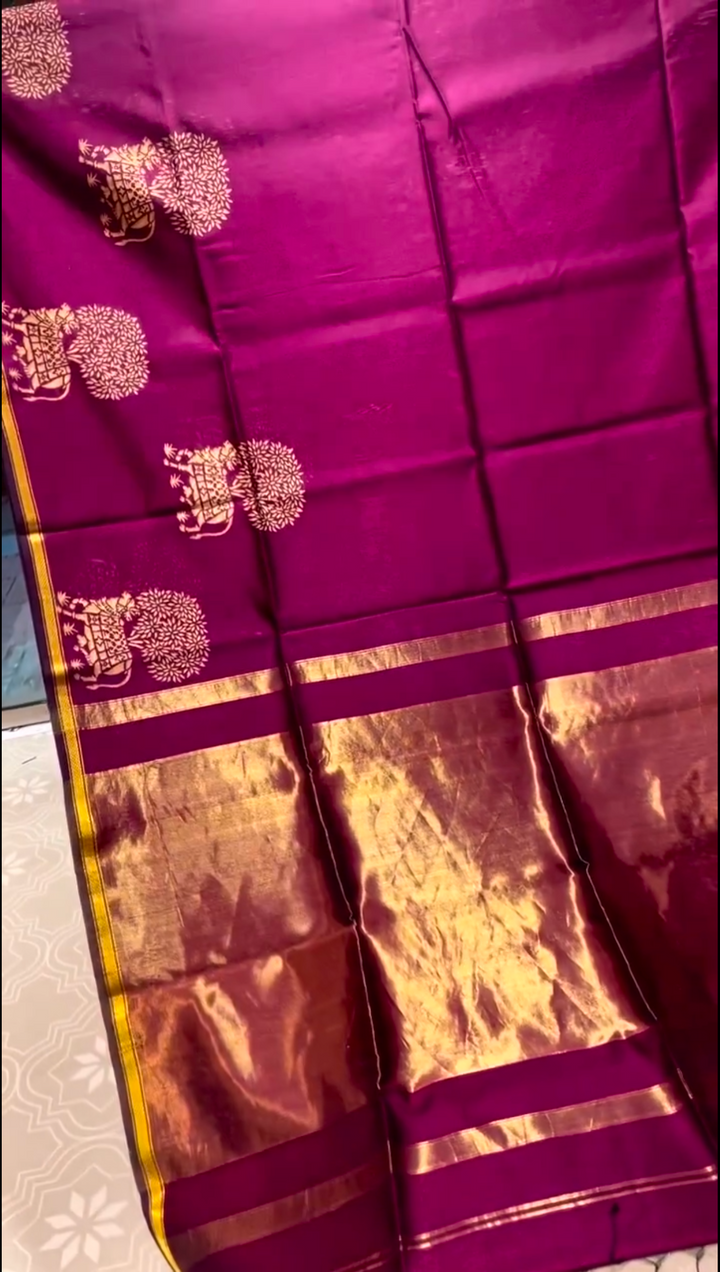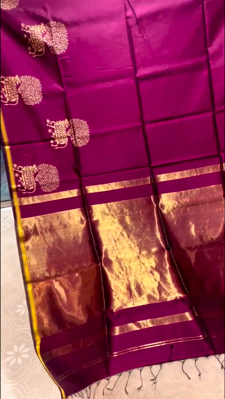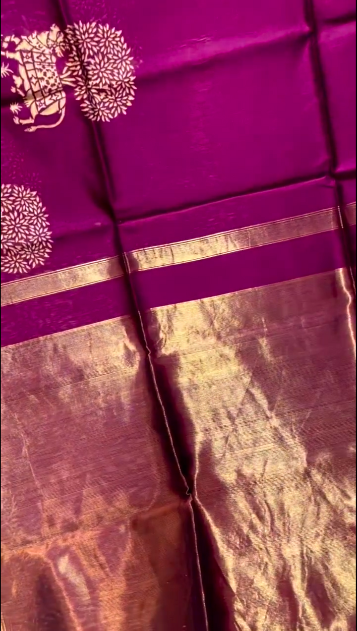 Zari Work: Rich zari (gold or silver thread) is often incorporated into the design, especially along the borders or pallu, creating a stunning contrast.