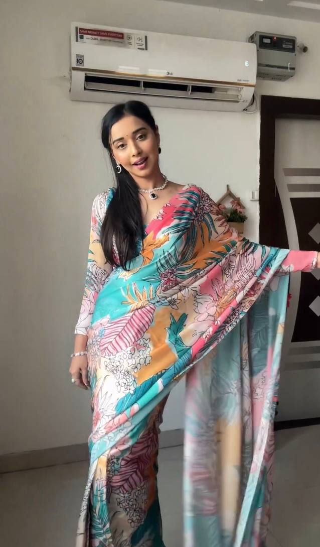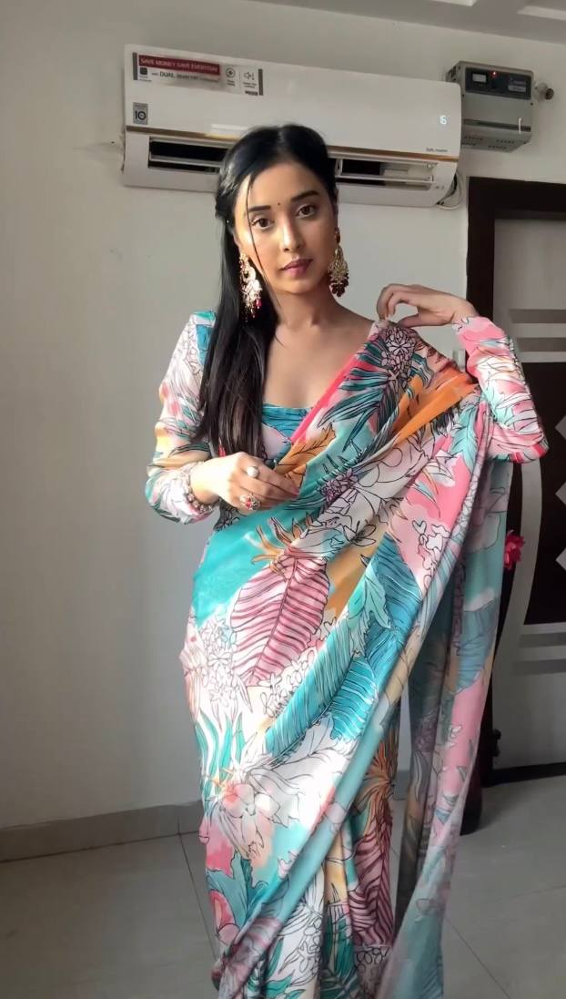 Looking for an effortless blend of tradition and style? Look no further because our Ready To Wear White Georgette Saree is all you need. This incredibly beautiful saree is pre-stitched and pre-pleated, allowing you to wear it within minutes. The pristine Multicolor, combined with the soft texture of Georgette, creates a mesmerizing aesthetic that suits any occasion. It's the perfect example of simplicity meeting elegance.