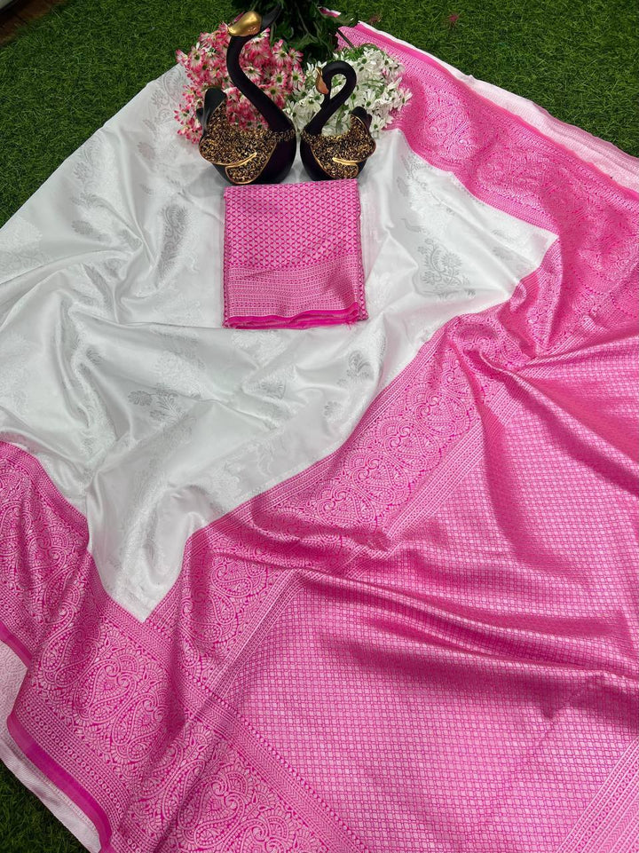 Pink Banarasi Silk Saree with Contrast Border