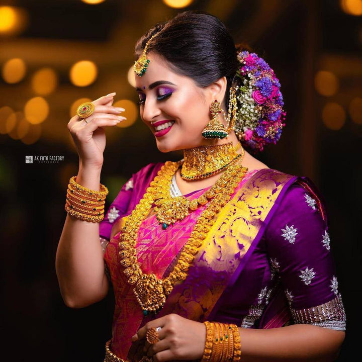 Dark Pink Colour Kanjivaram Woven Silk Saree With Blouse Piece