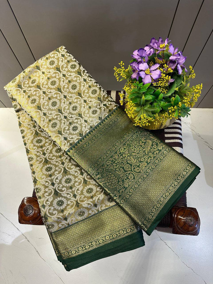Pure Kanjivaram Silk Saree With Weaving & Contrast Border & Contrast Gold Zari Rich Weaving Pallu