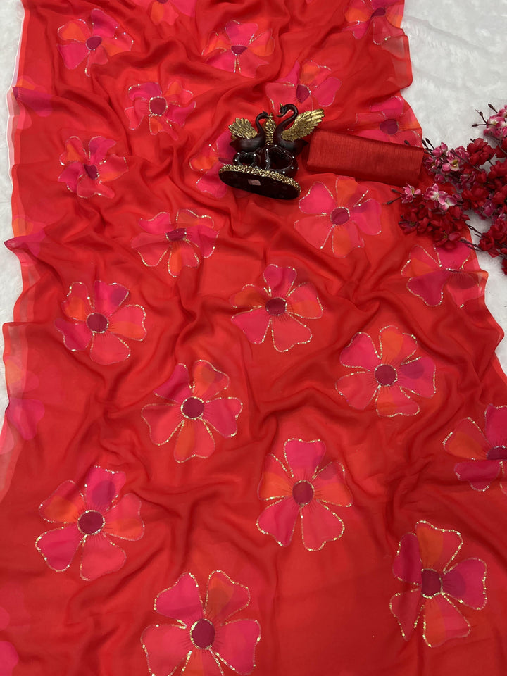 SAREE FABRIC: Premium Soft Georgette with Beautiful Flower and Leaf Print