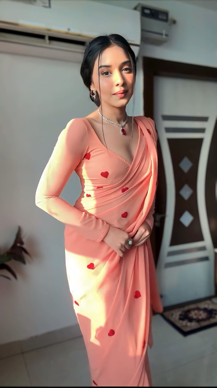 perfect blend of elegance and comfort. The lightweight georgette fabric drapes smoothly, allowing for easy movement. With its vibrant red color, it adds a touch of sophistication to your ensemble.