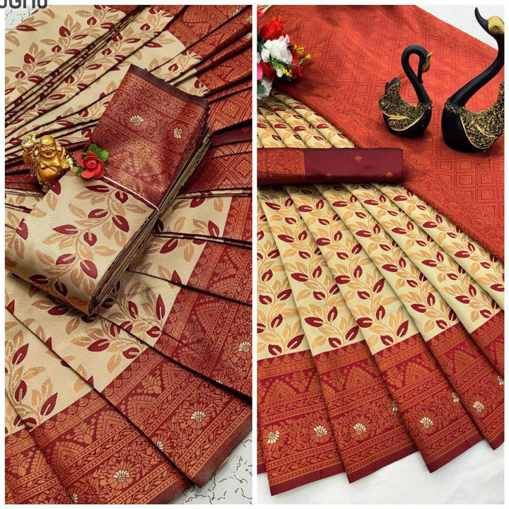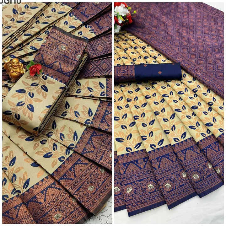 Most Stunning Triple Weaving Zari Concept Tissue Sarees . This concept Sarees is best for Party and wedding Occasion. This Tissue Kanchi Sarees is made of Pure Copper Zari and Self Design with contrast Colour Meena makes Sarees Adorable.