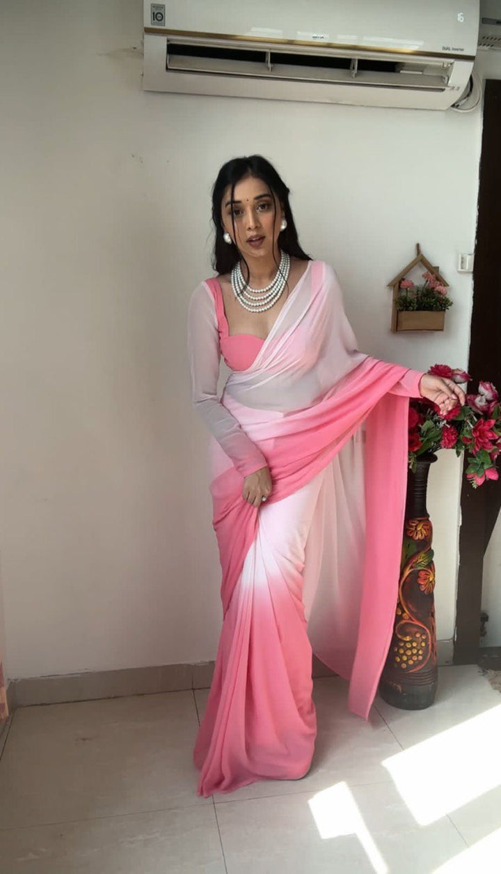 1-Min Georgette Ready To Wear Saree With Blouse Piece