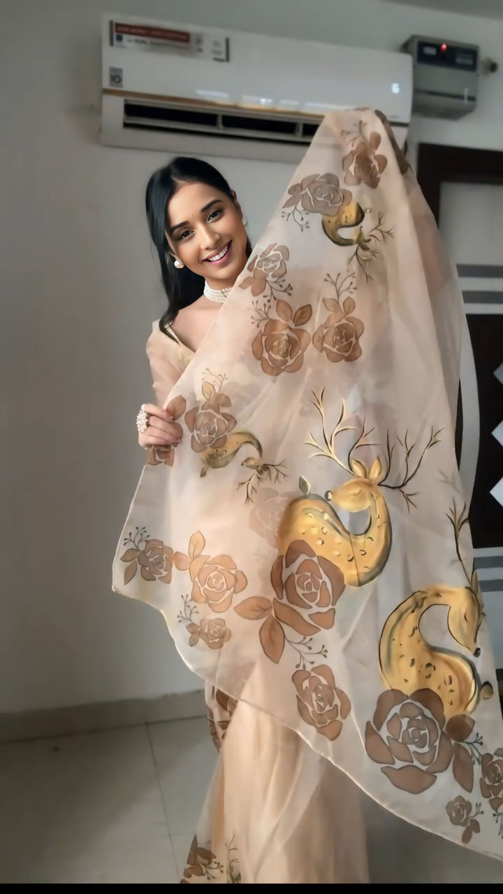 WOMEN'S PURE GEORGETT READY TO WEAR SAREE WITH FANCY BLOUSE